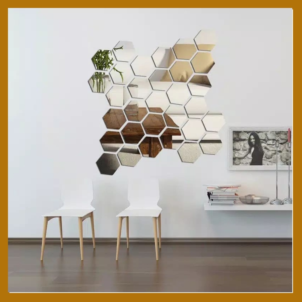 Minimaly12 Kaca cermin Tempel (ISI 13 PCS UK.16x14CM) Cermin Aesthetic Cermin Tempel Dinding Kaca Dinding Hiasan Dinding Kaca Hexagonal Cermin Hexagonal