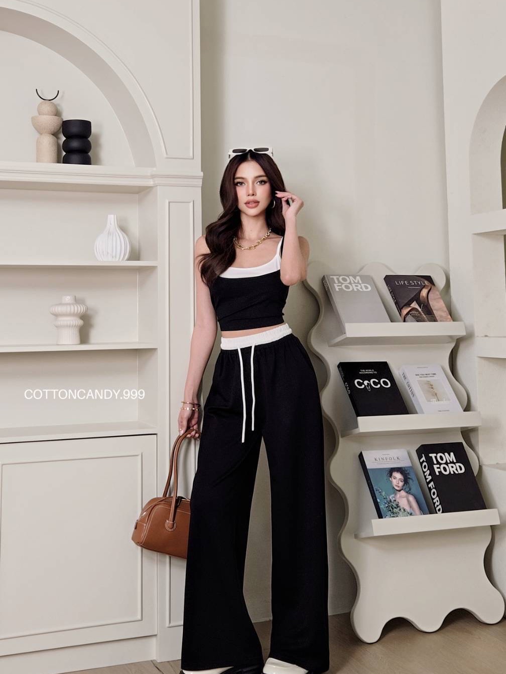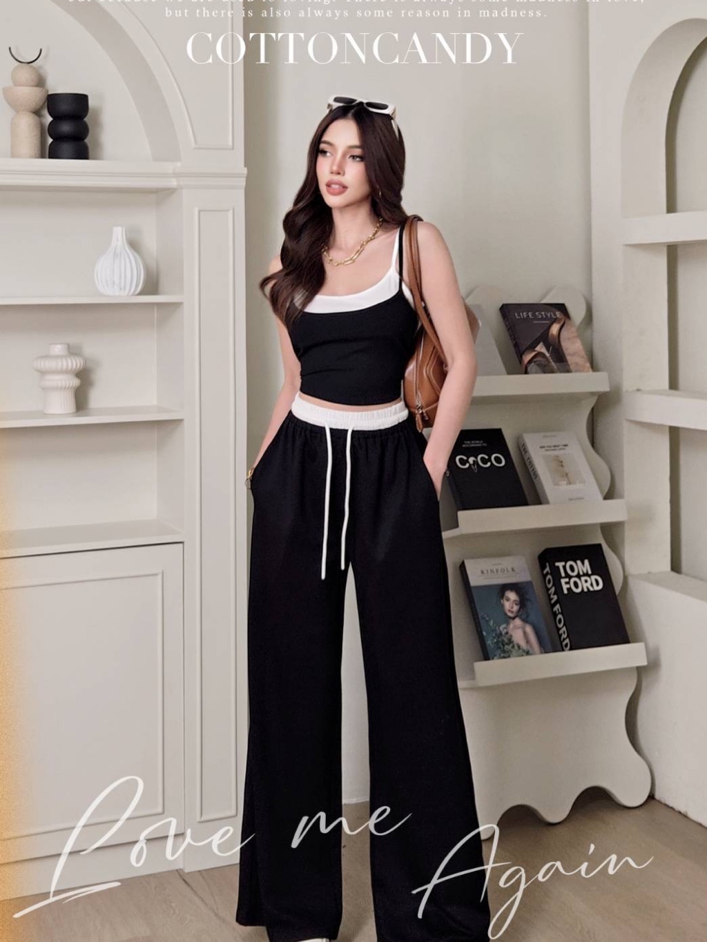 Minin Set (Korean Two Top Tank Top Long Pants Set Cotton Candy Import Bangkok)