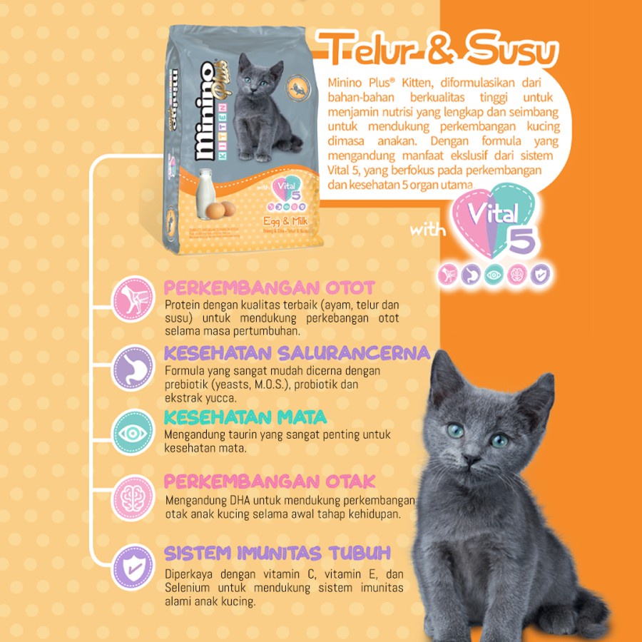 Minino Plus Kitten 1,5 Kg Egg & Milk Cat Food Minino Kitten 1.5 kg [ JUWIES RADIO KUCING ]