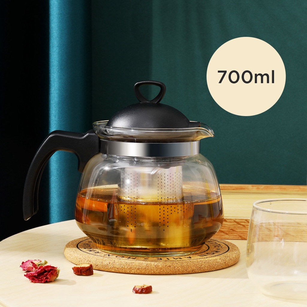 Miniso Teko Teh Gelas Teapot Saringan Kaca 700ML 900ML 1.5L Tempat Teh Kopi Air Transparan Teapot Tahan Lama