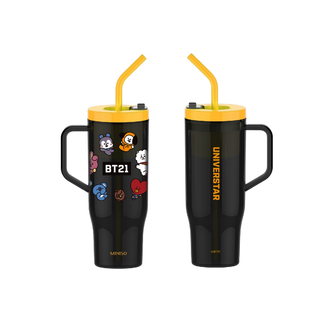 Miniso x BT21 Collection Gelas Plastik Dengan Sedotan Kapasitas Super Besar Cangkir Meja Plastic Tumbler With Straw Botol Plastik Olahraga 1250ml