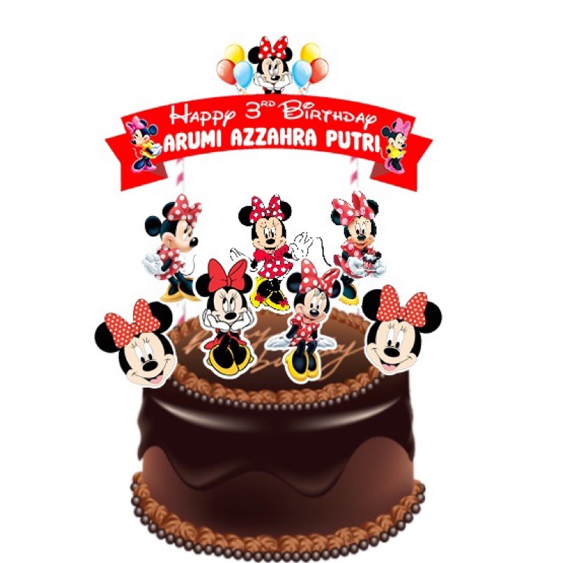 Minnie Mouse Ribbon Red Balon Topper Cake Birthday / Hiasan Kue Ulang Tahun