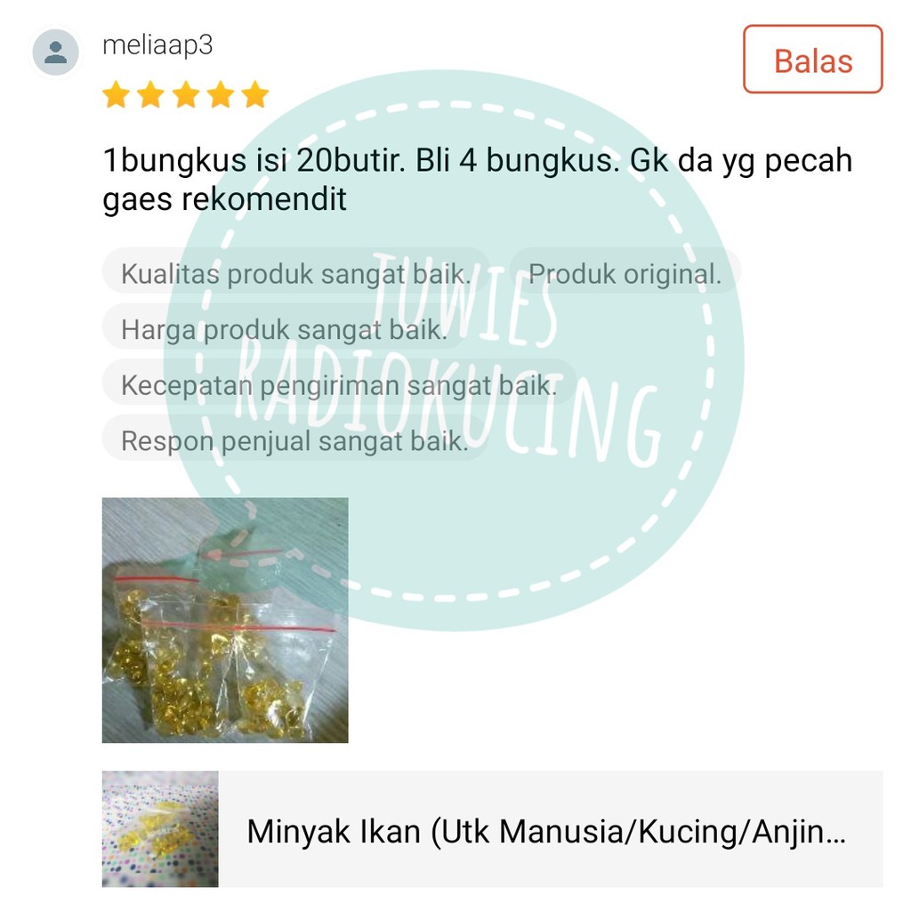 Minyak Ikan Sachet Isi 20 butir Utk Manusia/Kucing/Anjing/Hewan Peliharaan [ JUWIES RADIO KUCING ]