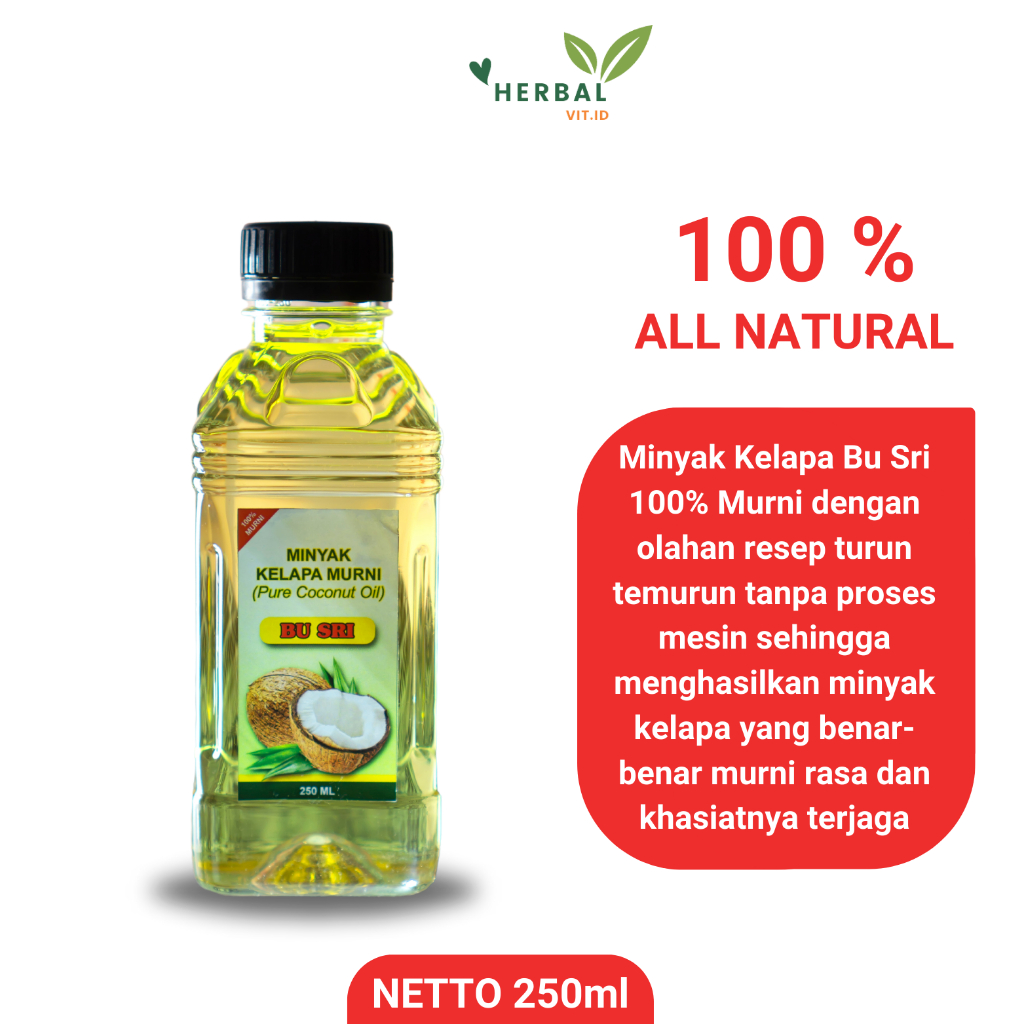 Minyak Kelapa Murni Bu Sri 250ml / Minyak Kelapa Asli 100% Murni / Minyak Kelapa Murni Asli 100%