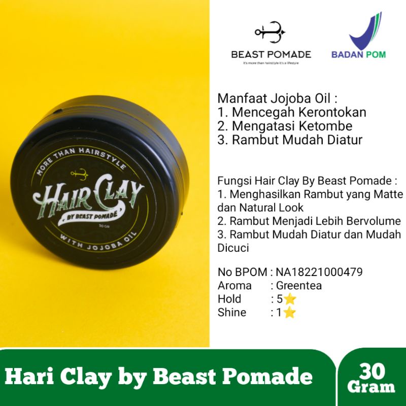 Hair Clay By Beast Pomade (30 gram) : Gaya Rambut Pria Tahan Lama, Natural Look Tanpa Kilap, dengan Matte Finish - Cocok untuk Semua Jenis Rambut (30g)