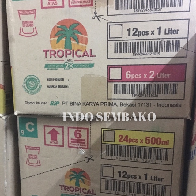 Minyak Tropical Dus 1 liter x 12 botol refill / Minyak Goreng Tropical 1l Karton / Minyak masak