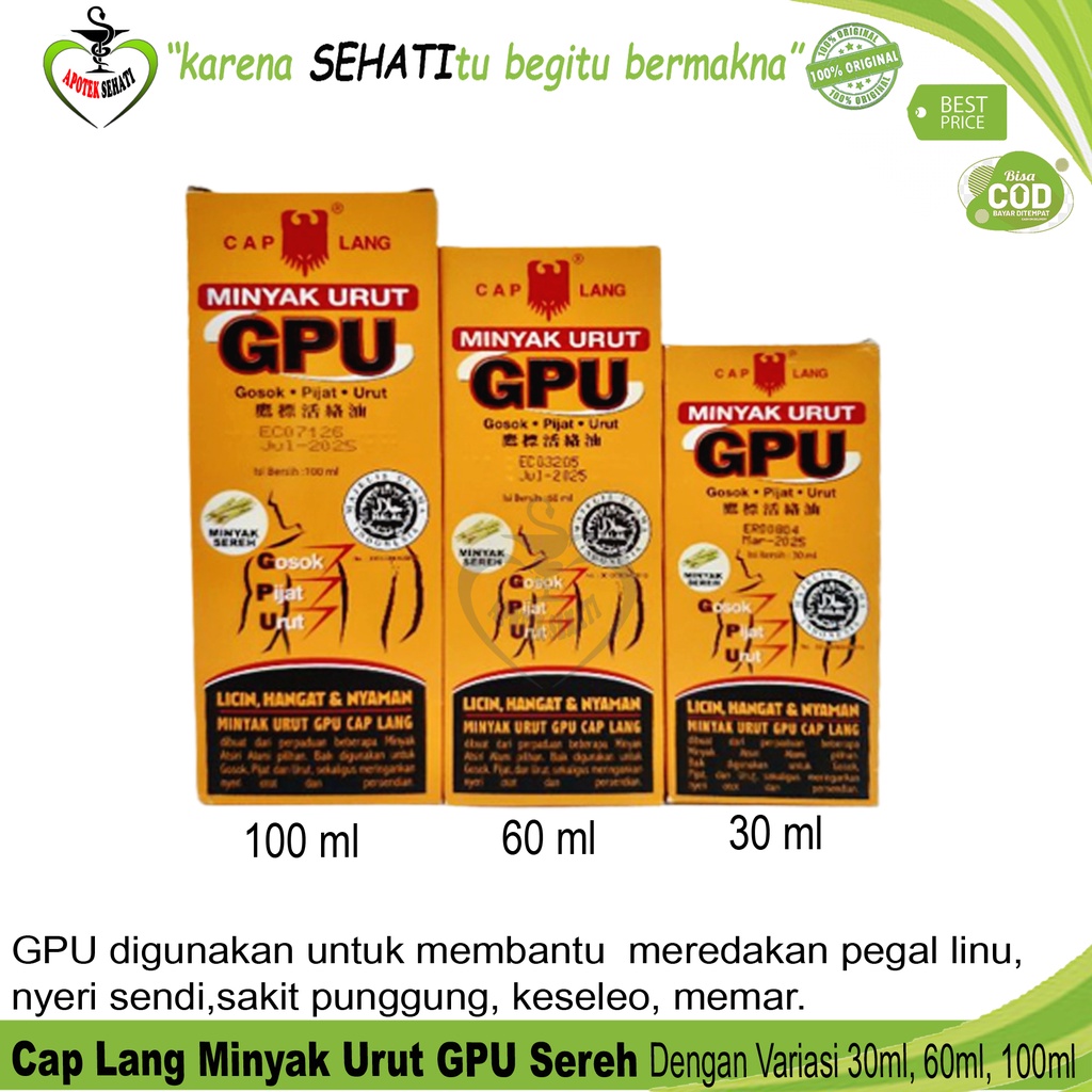 Minyak Urut GPU Sereh Cap Lang Variasi 30ml 60ml 100ml Minyak Pijat Gosok