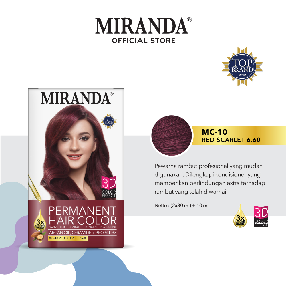 Miranda Hair Color (Cat Rambut Permanen) MC10 Red Scarlet 30ml | Semir Halal Warna Merah