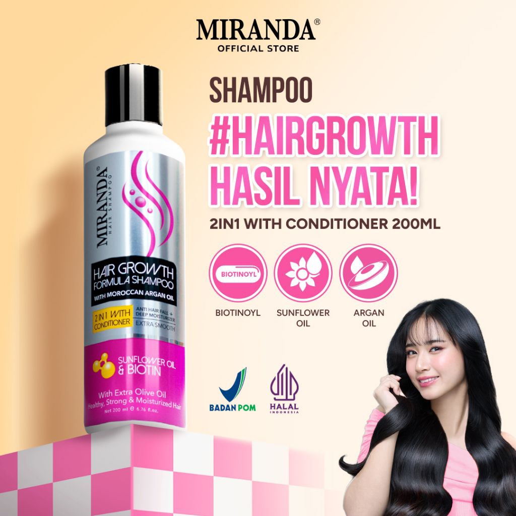 Miranda Hair Growth Biotin Shampoo Sunflower Oil 2in1 with Conditioner 200ml | Perawatan Rambut Rontok Penumbuh Pemanjang Rambut Cepat