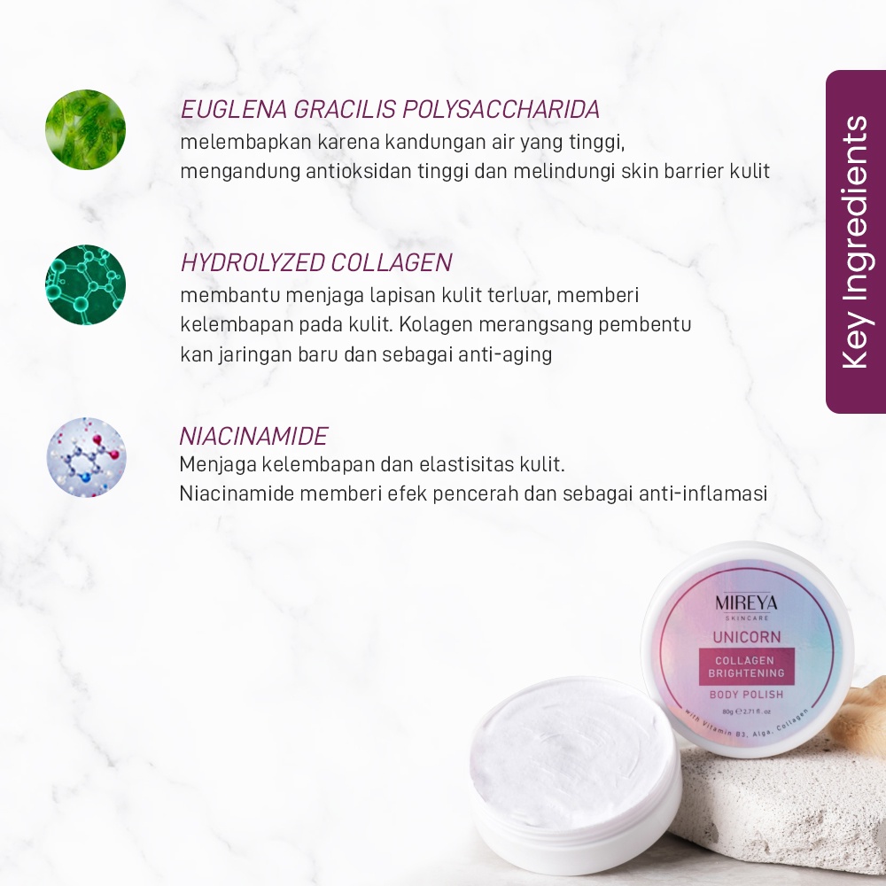 Mireya Unicorn Body Polish Collagen Brightening 80g - Lulur Mireya Collagen Body Polish Colagen Scrub Body Peeling Pemutih Pencerah Tubuh