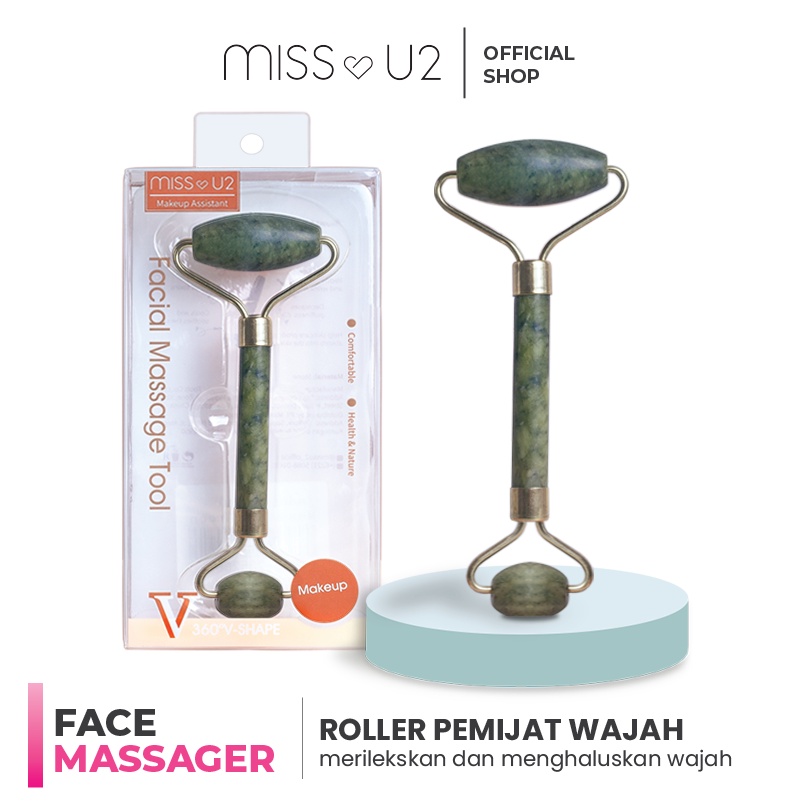 Miss U2 Jade Roller Hijau Alat Pijat Wajah - Facial Face Massage Tool