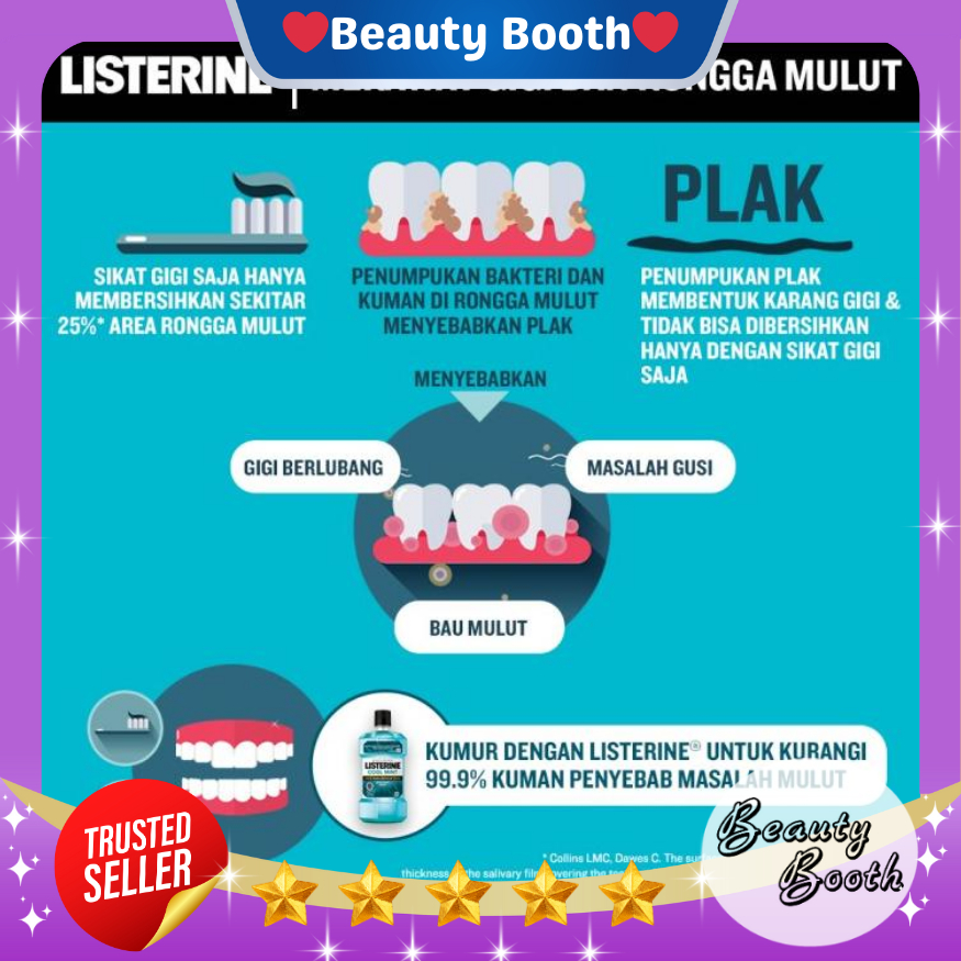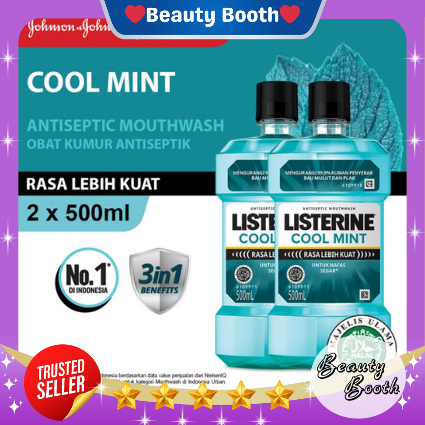 LISTERINE Mouthwash TWIN PACK Cool Mint 500ml| Twin Pack Isi 2pcs Obat Kumur - Beauty Booth Beautybooth