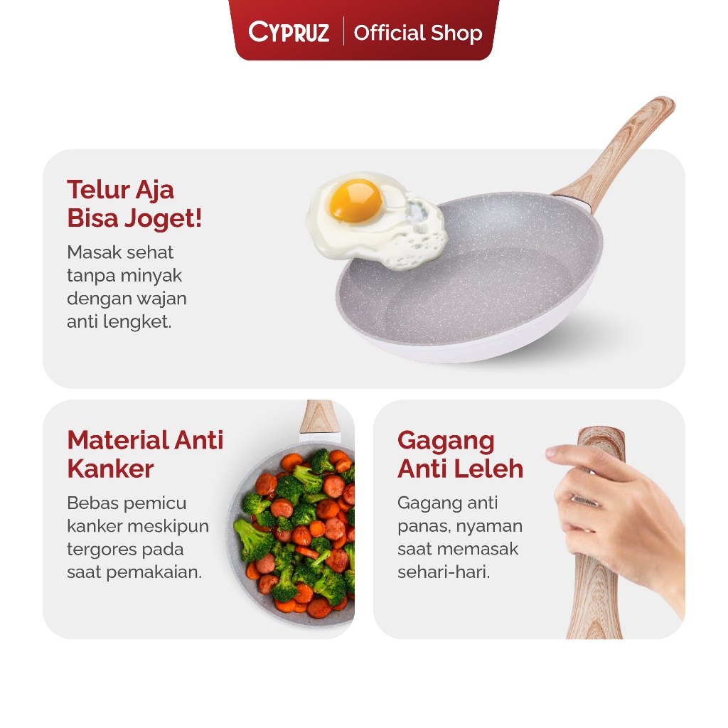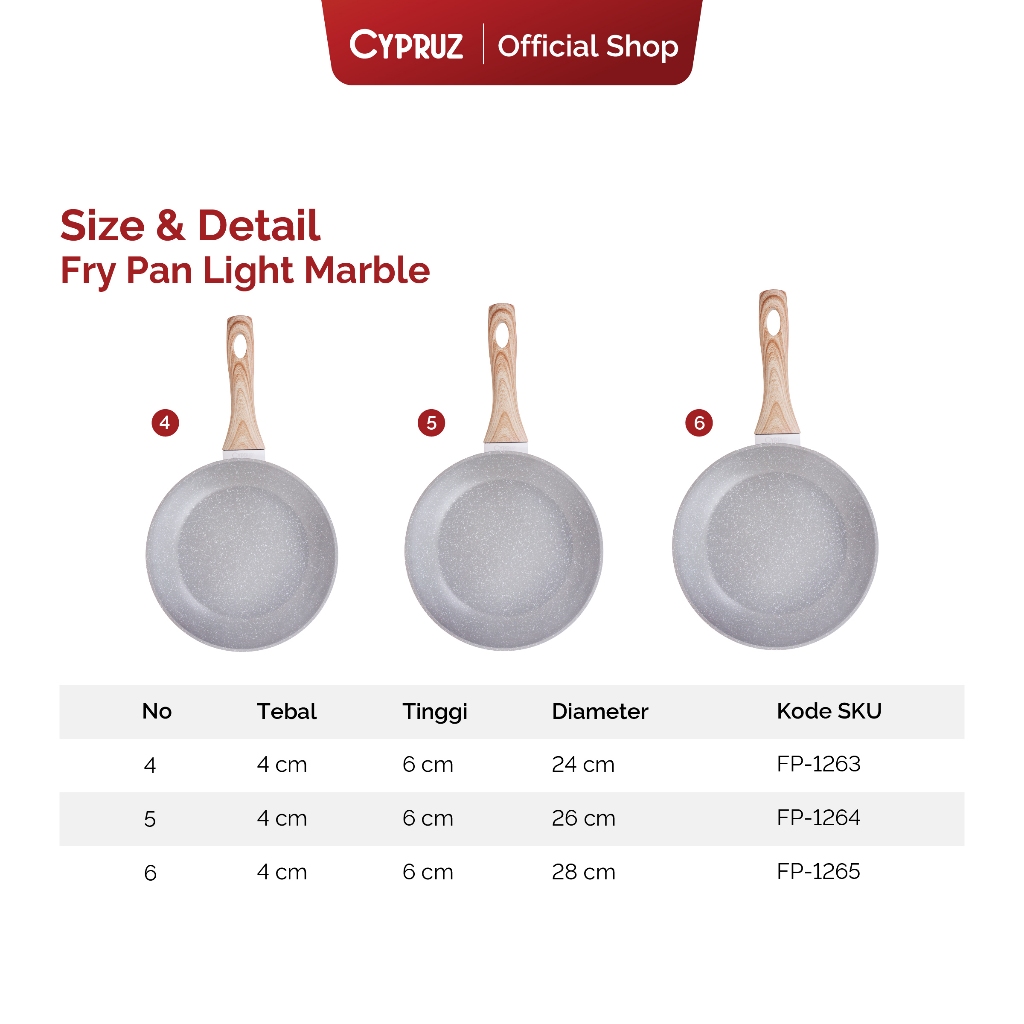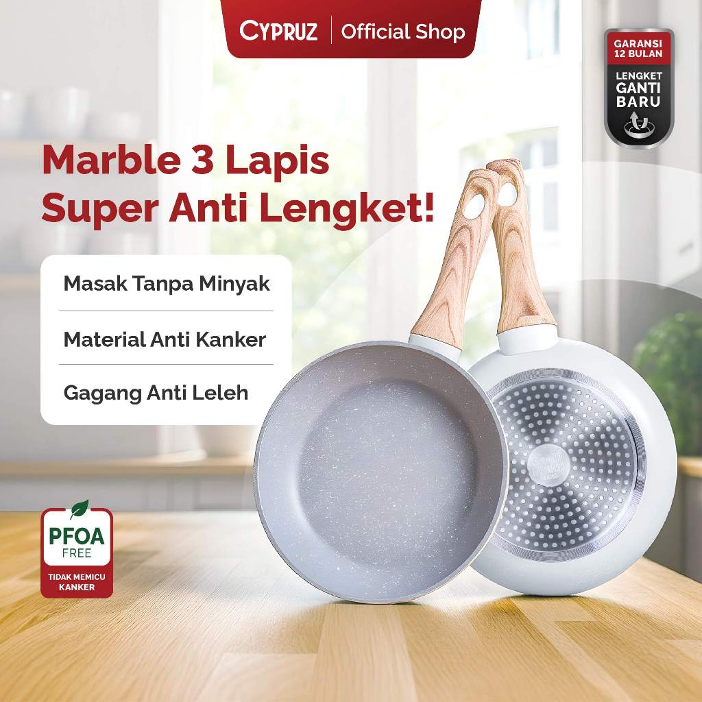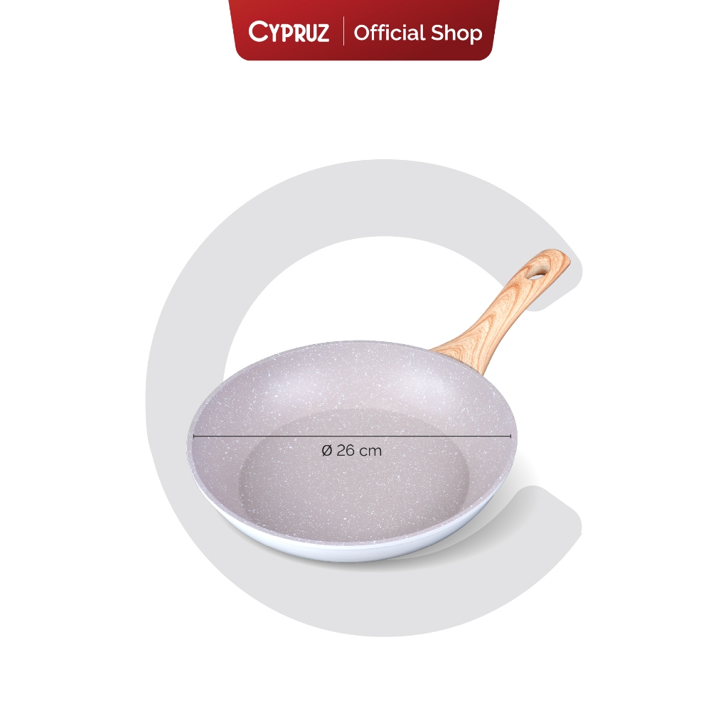 Cypruz Wajan Penggorengan Anti Lengket Fry Pan Induksi Light Marble Gagang Kayu