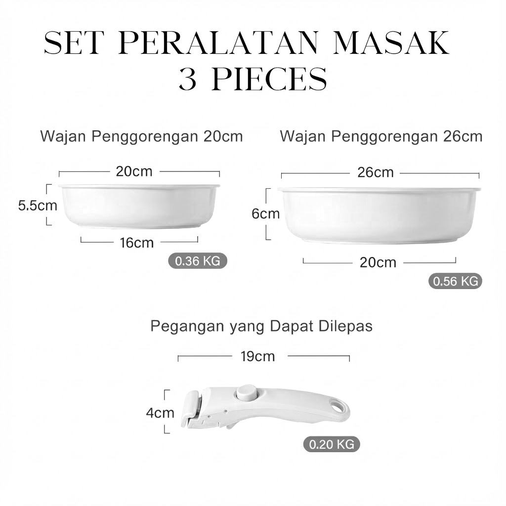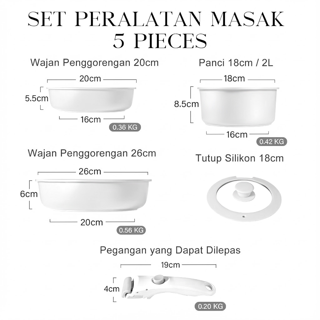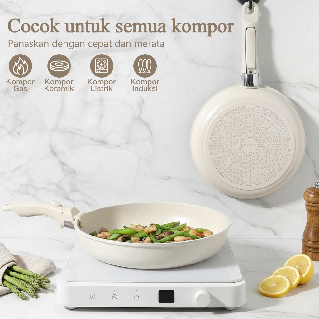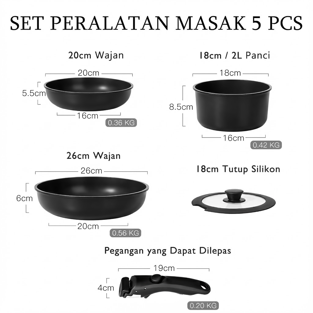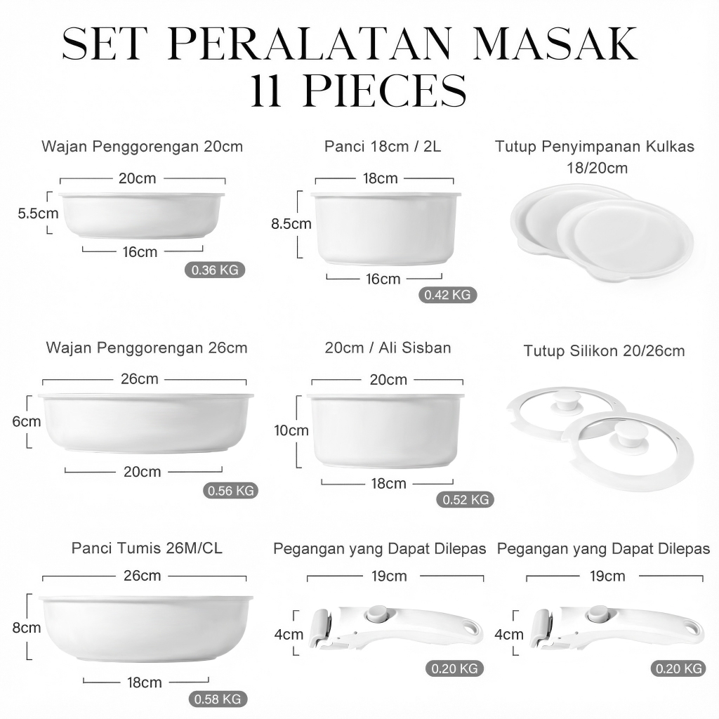 GiPP 3/5/11pcs Removable Handle Cookware Set - Nonstick Wok Pan & Pots Bebas PFAS & PTFE & PFOA
