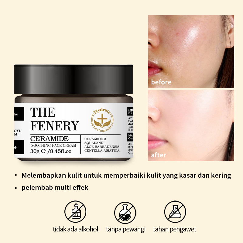 The Fenery Ceramide Soothing Face Cream 30ml - Ceramide Moisturizer Pelembab Wajah Whitening Glowing Moisture Gel Day & Night Cream Skincare Pelembab Wajah Memperbaiki Skin Barrier dan Primer Menghidrasi Kulit Wajah Ceramide