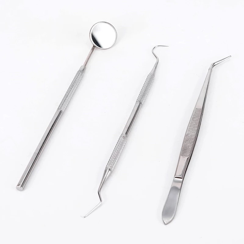Alat standart dental diagnostic diagnostik kit set pembersih karang gigi isi 3 standar kaca mulut pinset tweezer sonde halfmoon stainless dokter gigi