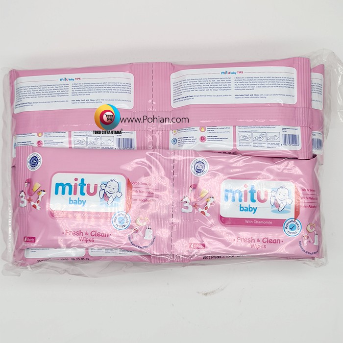 Mitu Baby Wipes Fresh and Clean/ Tissue Basah Mitu Pink isi 4 sheet