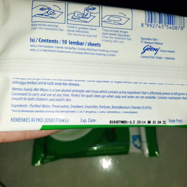 Mitu Wetties Antiseptic 10s Fresh Clean / Tissue Basah Wetties