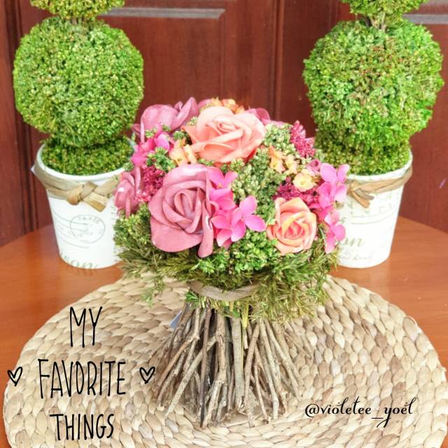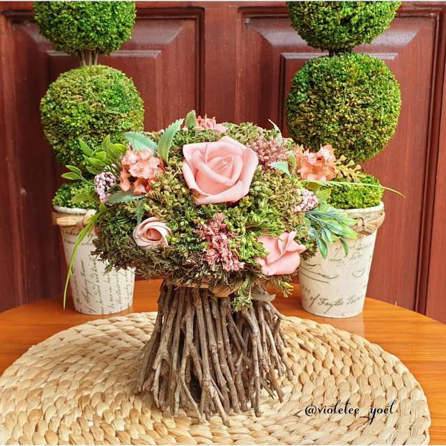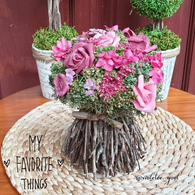 Mix Mawar di Vas Ranting Artificial 1706