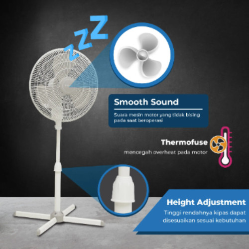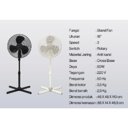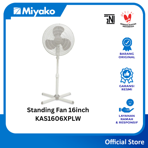 Miyako KAS1606XPLW Kipas Angin berdiri putih Stand Fan White 16 inch - kaki Silang Plastik