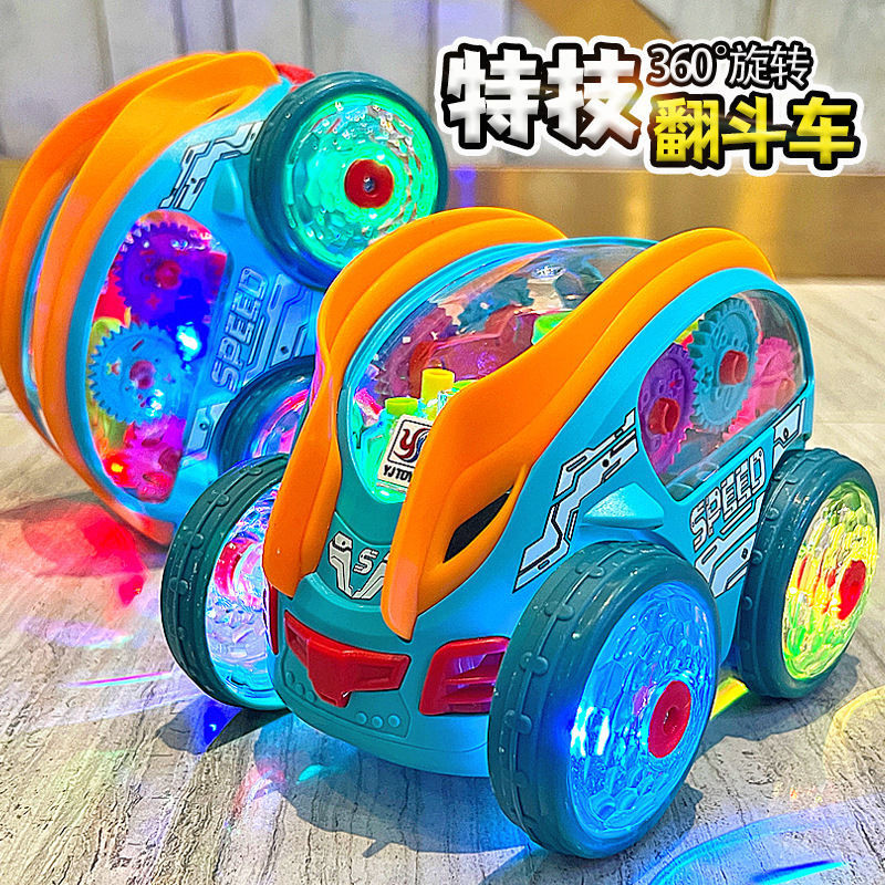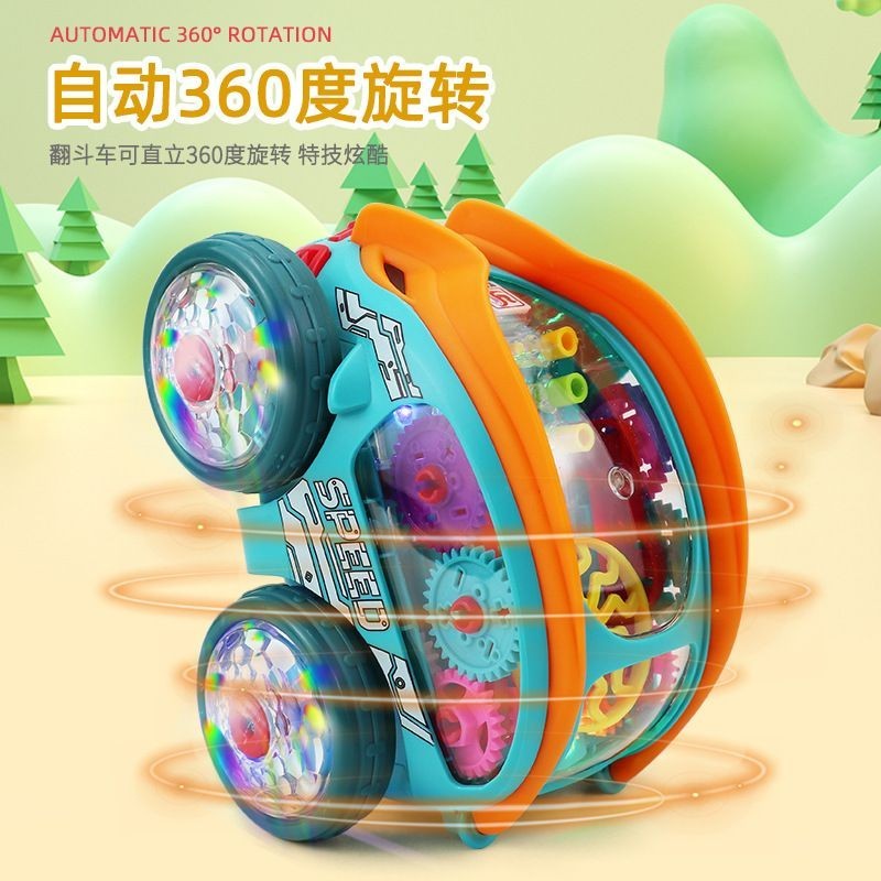 Mobil Mainan Lipat Anak-anak, Dumptruck Listrik Flip Bucket Stunt Gear Mobil Mainan Berputar 360 Derajat Anak Laki-laki dan Perempuan