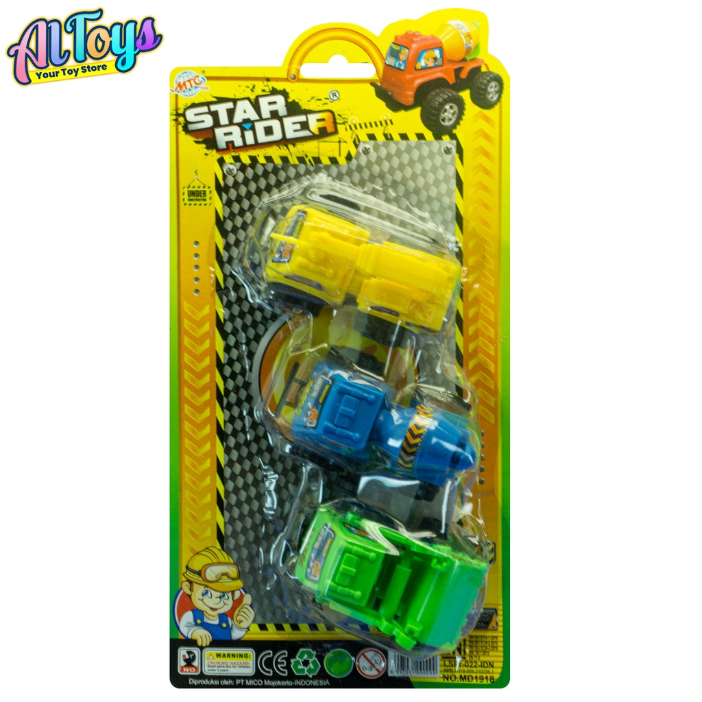Mobil Mobilan Konstruksi Set Isi 3 Pcs Pullback / Mainan Kendaraan Truck Konstruksi MD1918