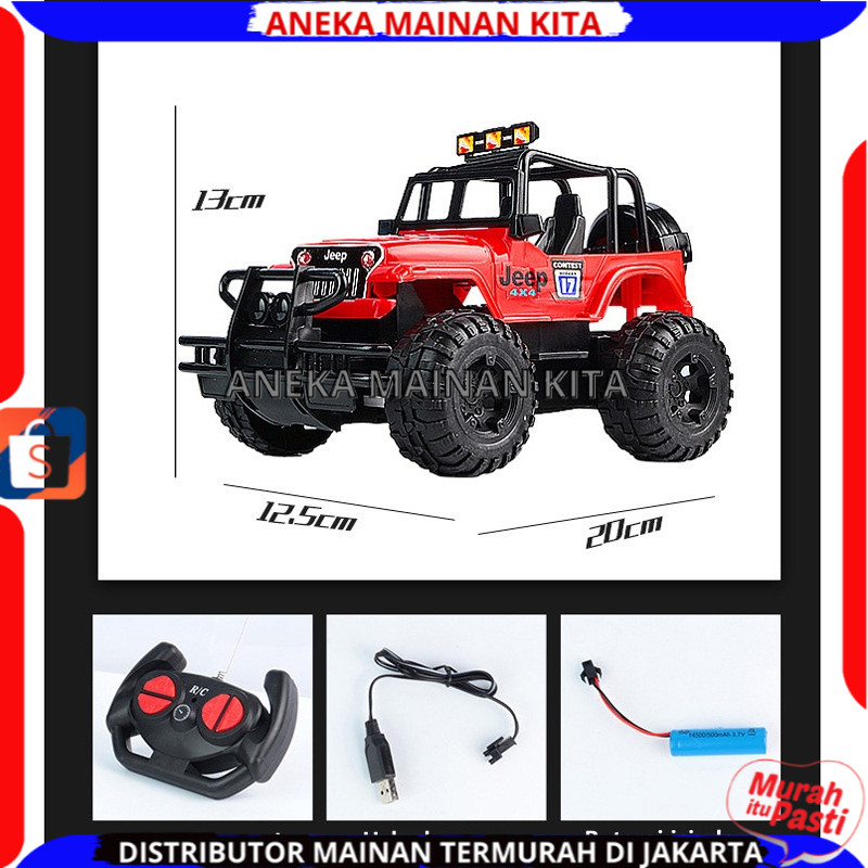Mobil Remote Control Jeep Fighter Offroad Baterai Cas Scale 1:16