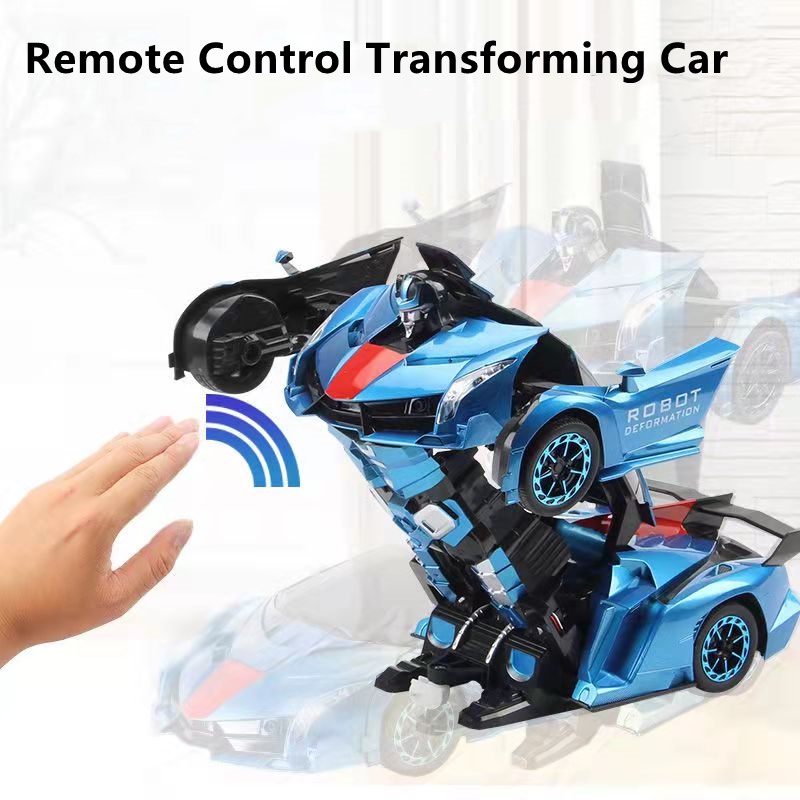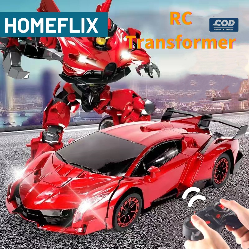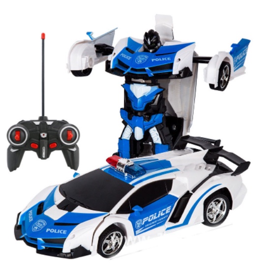 Mobil Robot Remote Control Anak 2 In 1 Mainan Mobil Transformers Mudah RC Mobil Polisi 1:18