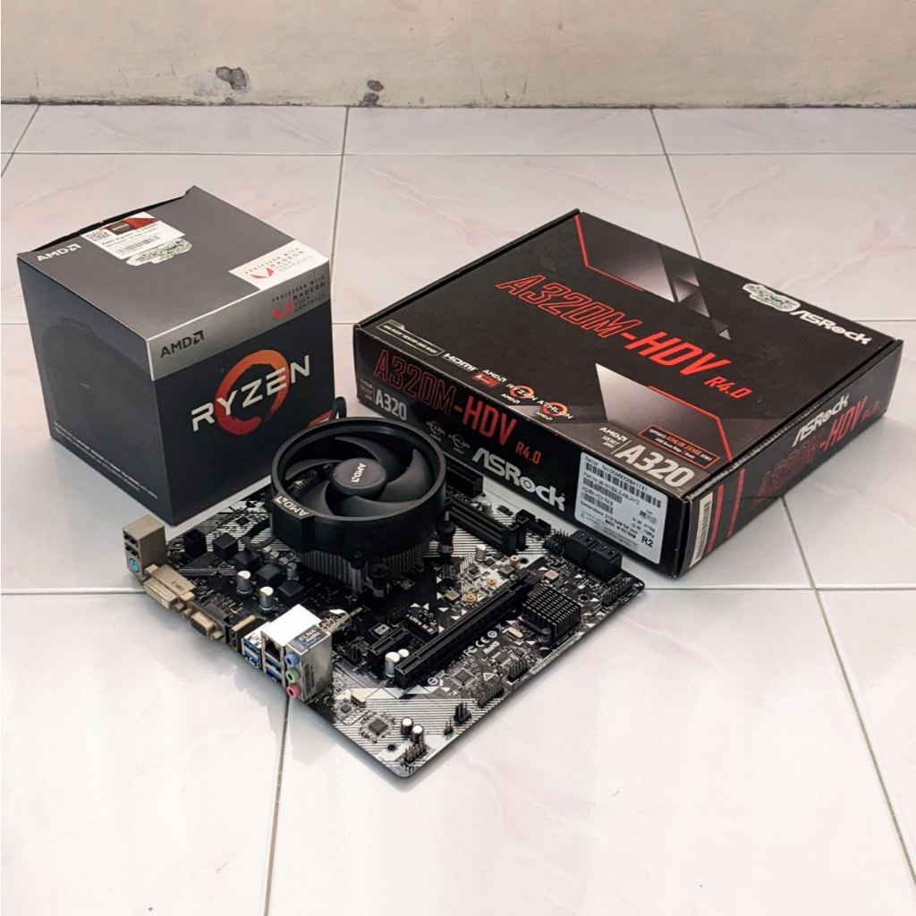 Mobo ASRock A320M-HDV R4.0 dan AMD Ryzen 5 2400G with Radeon RX Vega Graphics