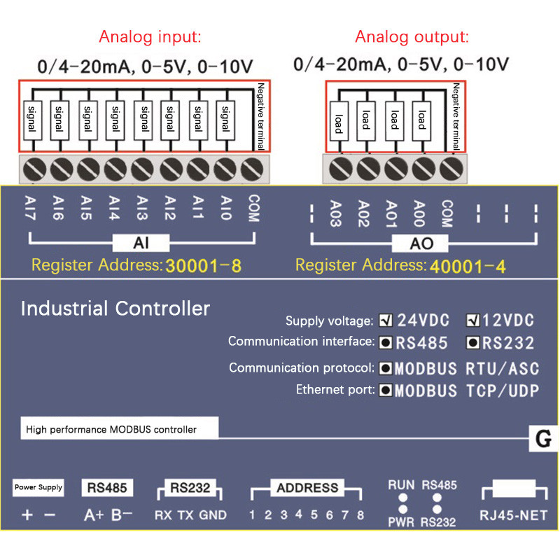 Modbus TCP Industrial Controller Ethernet High-Speed Unit With 8 Analog Inputs And 4 Analog Outputs X95J8