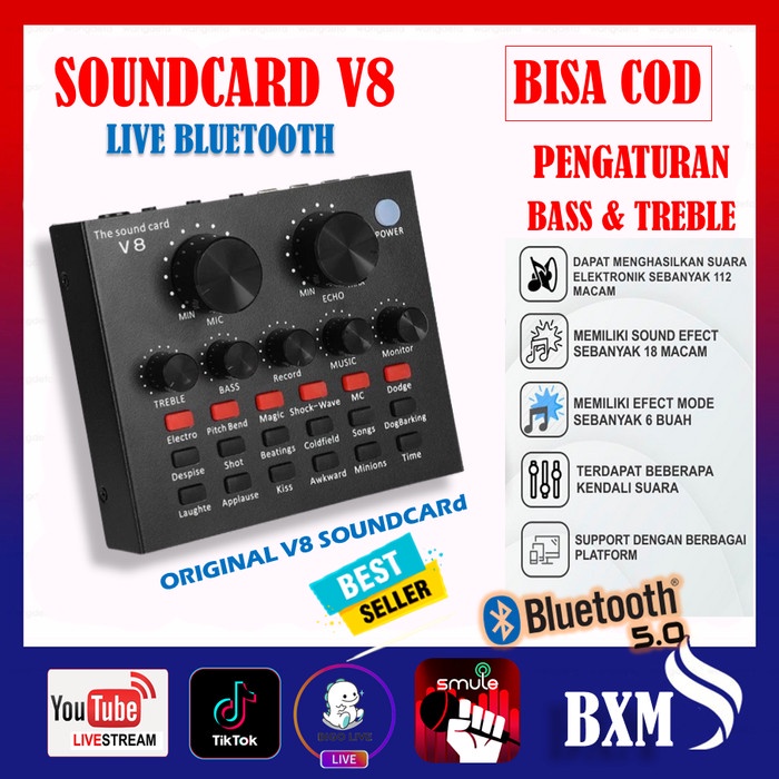 Model Menarik Soundcard V8 / Sound Card V8s V8 / Bluetooth Audio Usb External Live Mixer Audio Soundcard