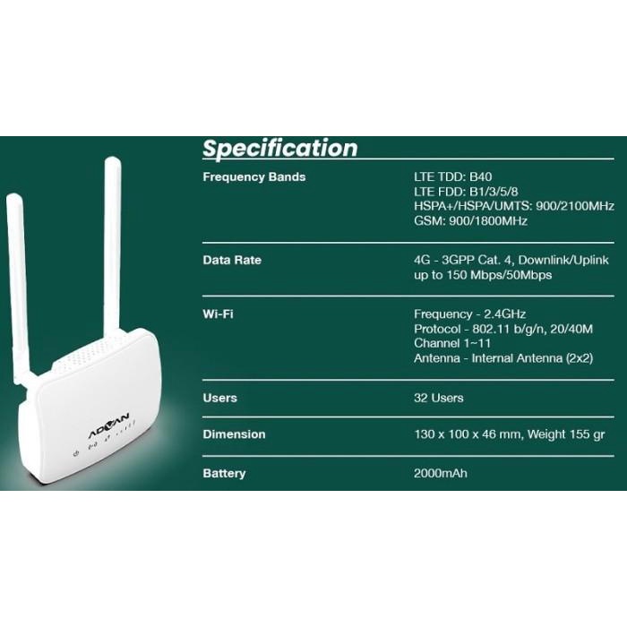 Modem Mifi Wireless Router Advan Start 4G Lte Free Indosat (Unlock)