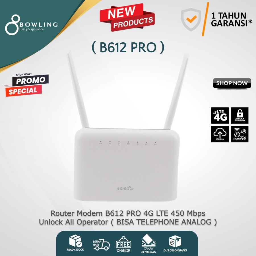 Modem Router 4G LTE B612 PRO 450 Mbps 4G LTE Unlock All Operator Bisa Untuk Telephone Analog ( Port RJ11 )