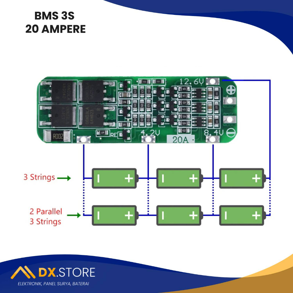 Modul BMS 3S 20A 12V Pack Balance Lithium Baterai Li-ion 18650 PCB Battery Protection board