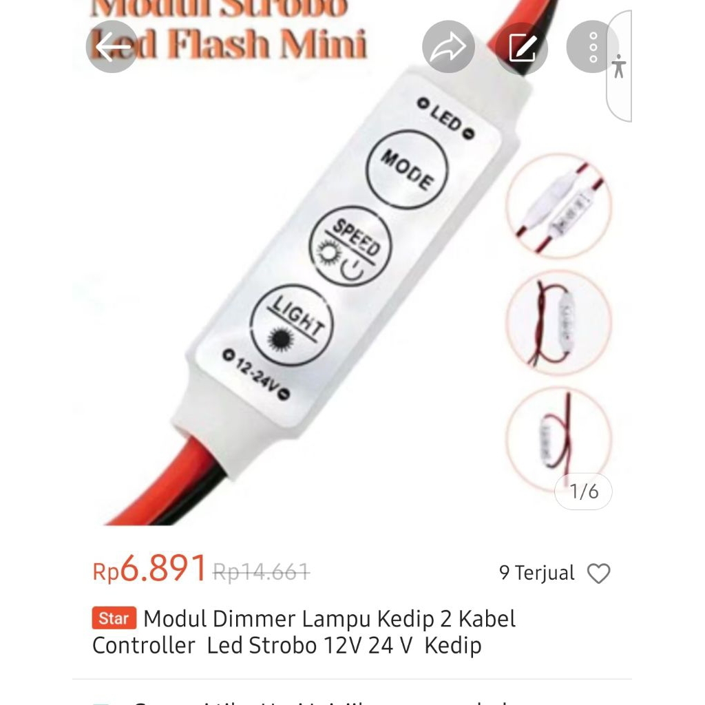 Modul Dimmer Lampu Kedip 2 Kabel Kontroller Control LED Strobo 12 Volt 24 Volt Kedip