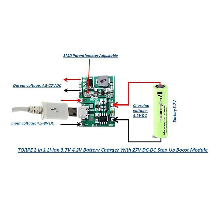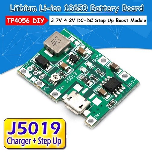 Modul J5019 2in1 DC Step up Regulator 2A Adjustable + TP4056 Battery Charger Lithium Li-ion 18650