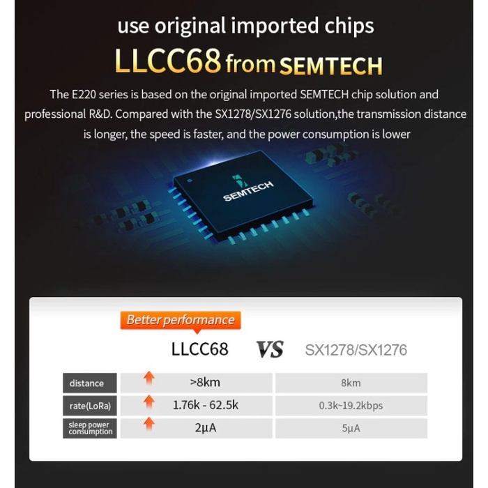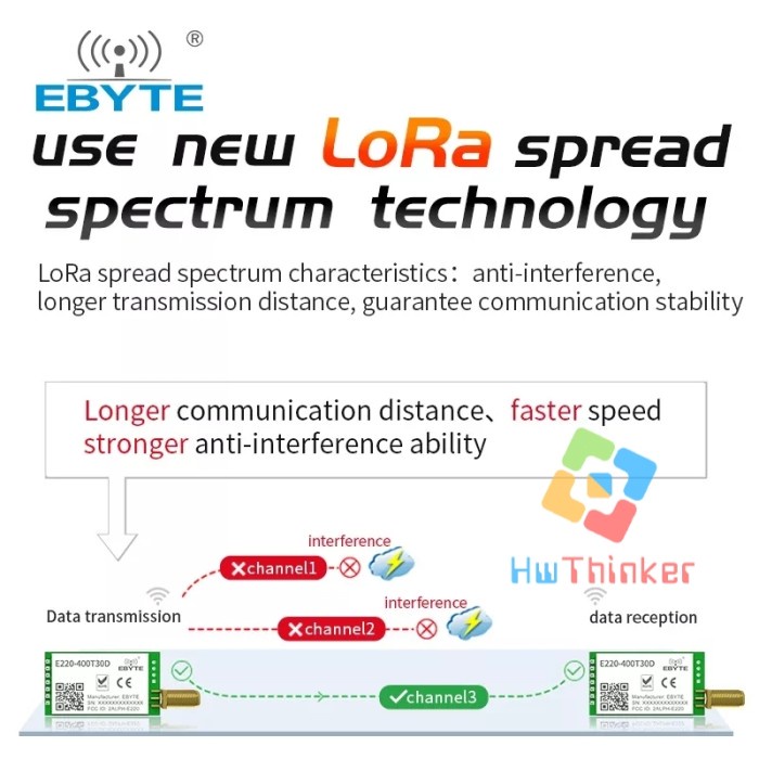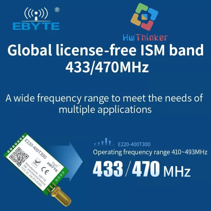 Modul LoRa Ebyte LLCC68 E220-400T30D 433MHz 30dBm UART TTL RSSI