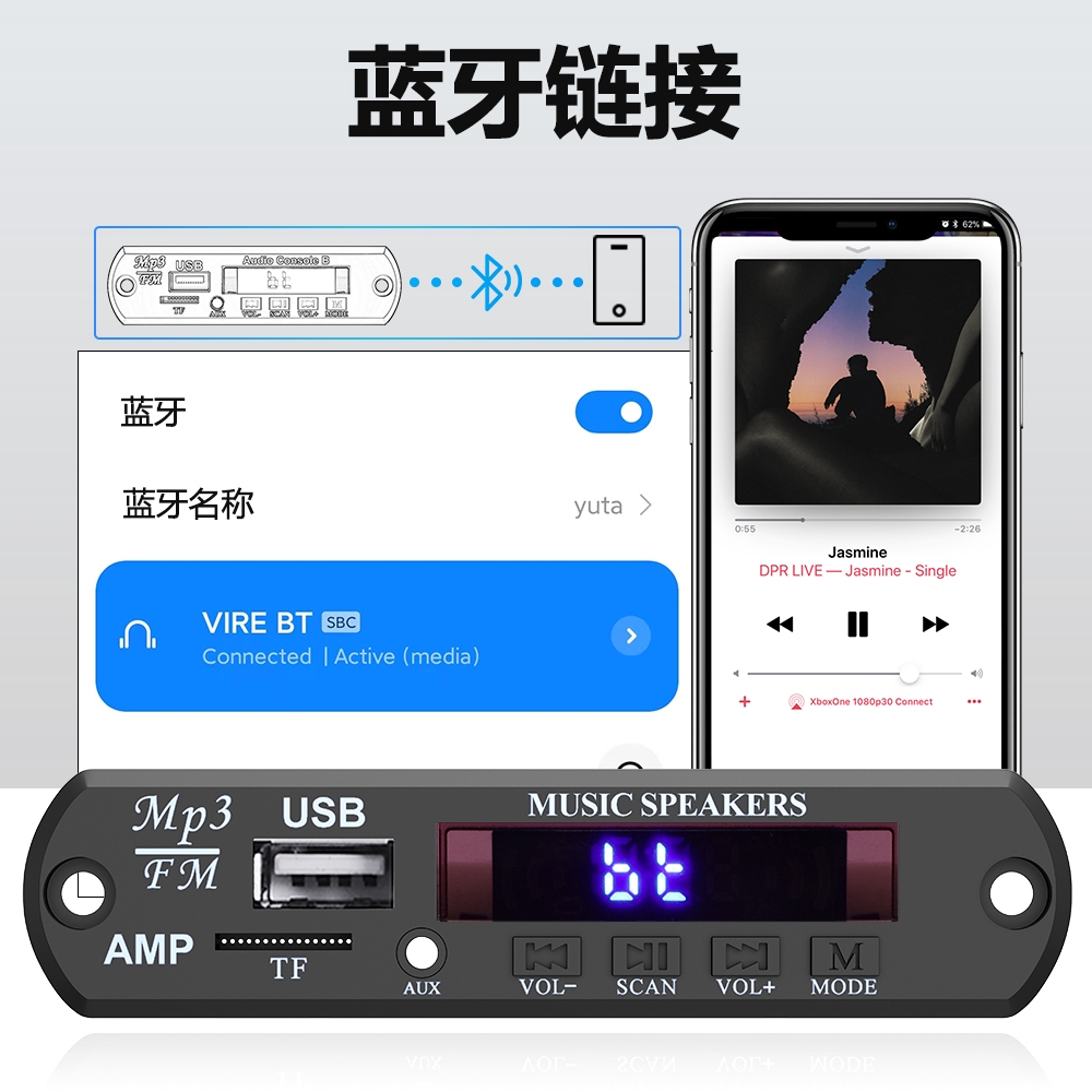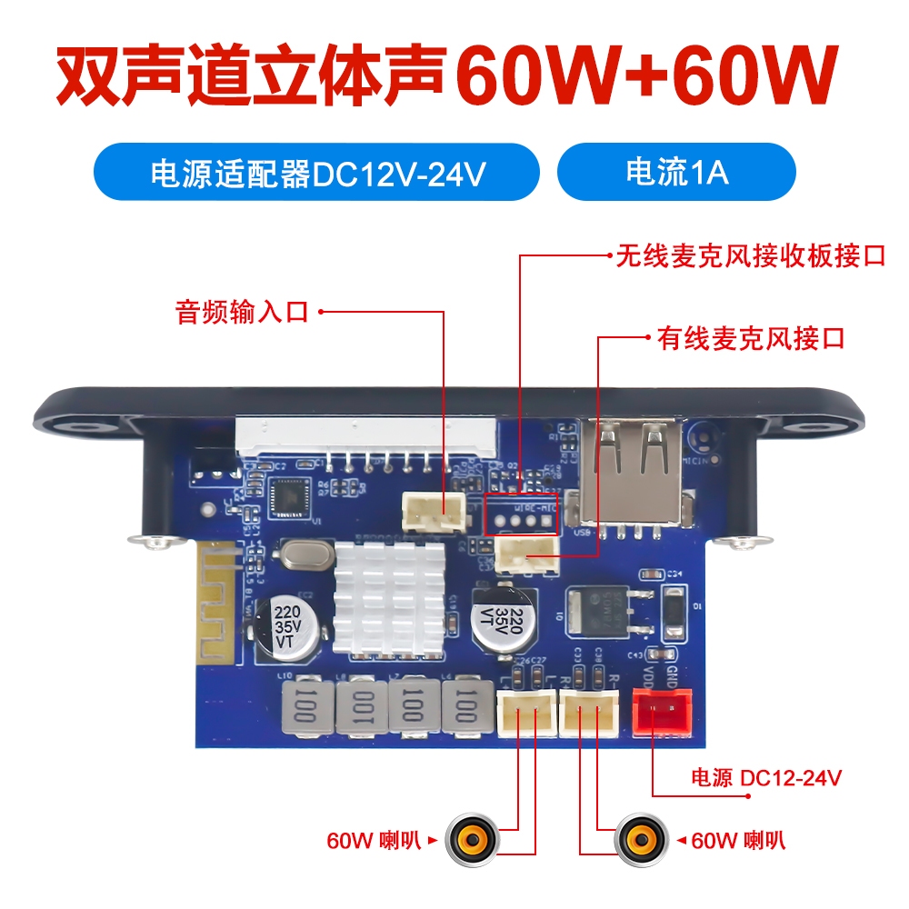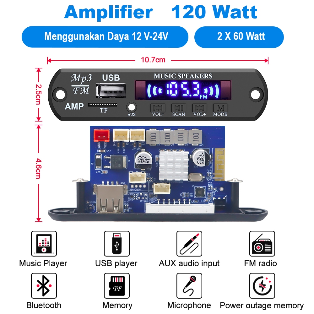 Modul MP3 Bluetooth Hi-Fi Stereo Amplifier Bluetooth 120W Support USB/TF/FM/AUX & Karaoke Microphone dilengkapi pendingin