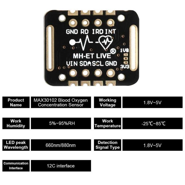 Modul Sensor MAX30102 Heart Beat Rate Detak Jantung Pulse Oximeter i2c