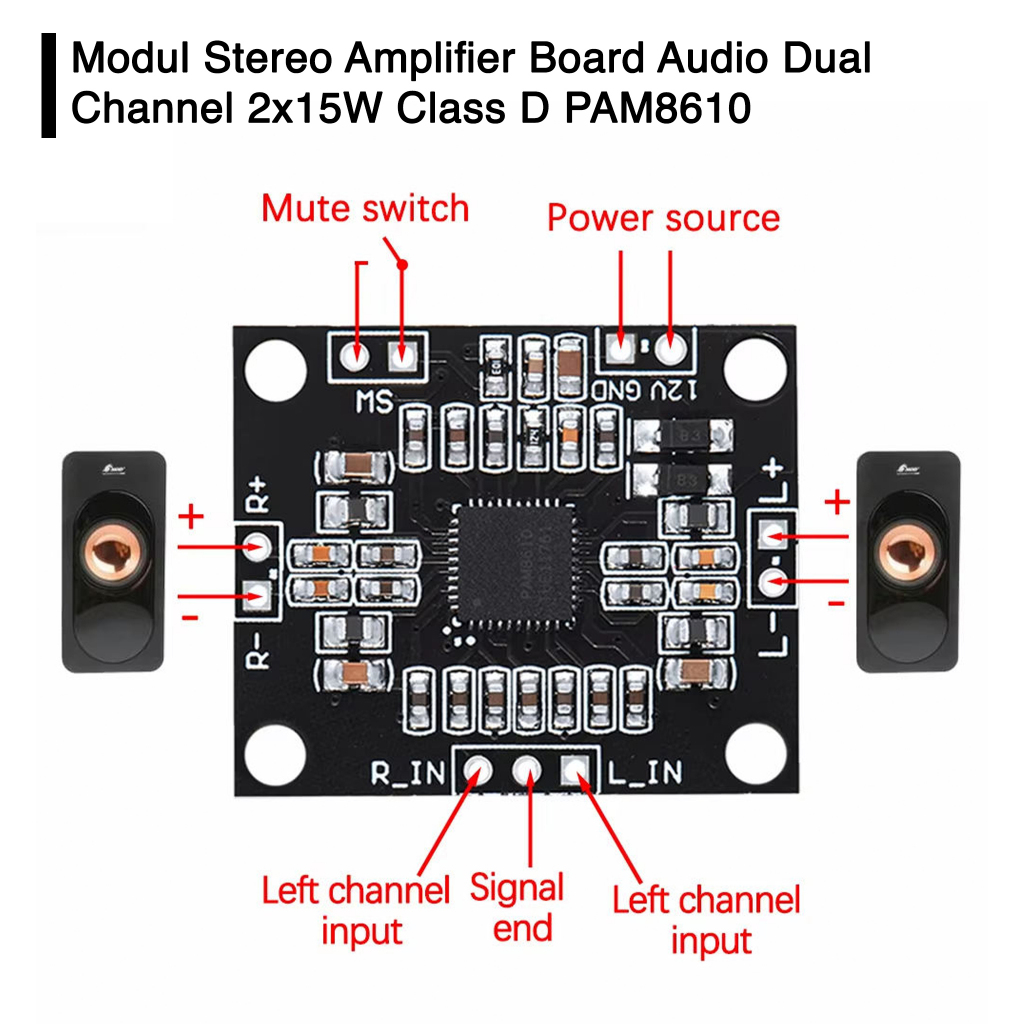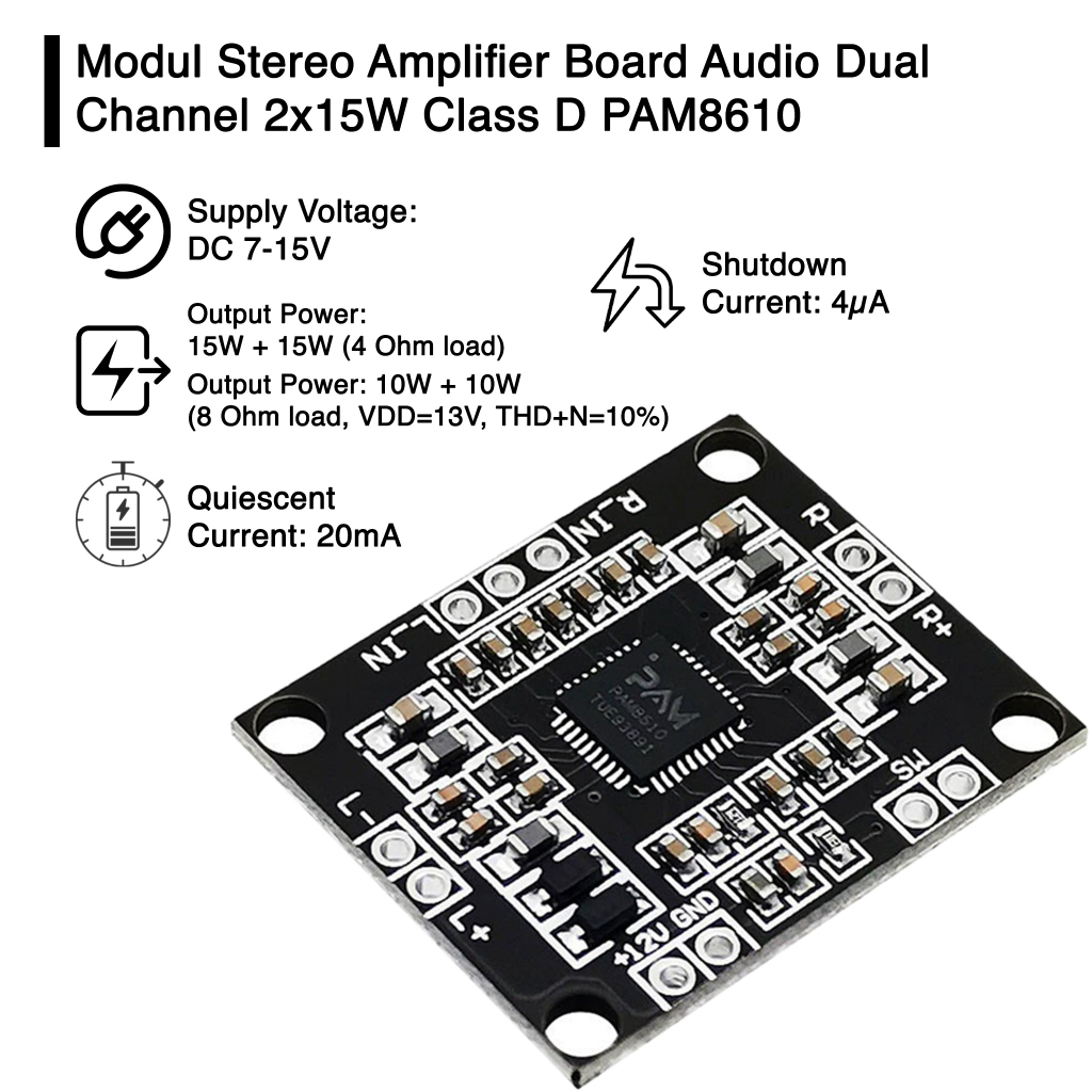 Modul Stereo Amplifier Audio Dual Channel 2x15W Class D PAM8610