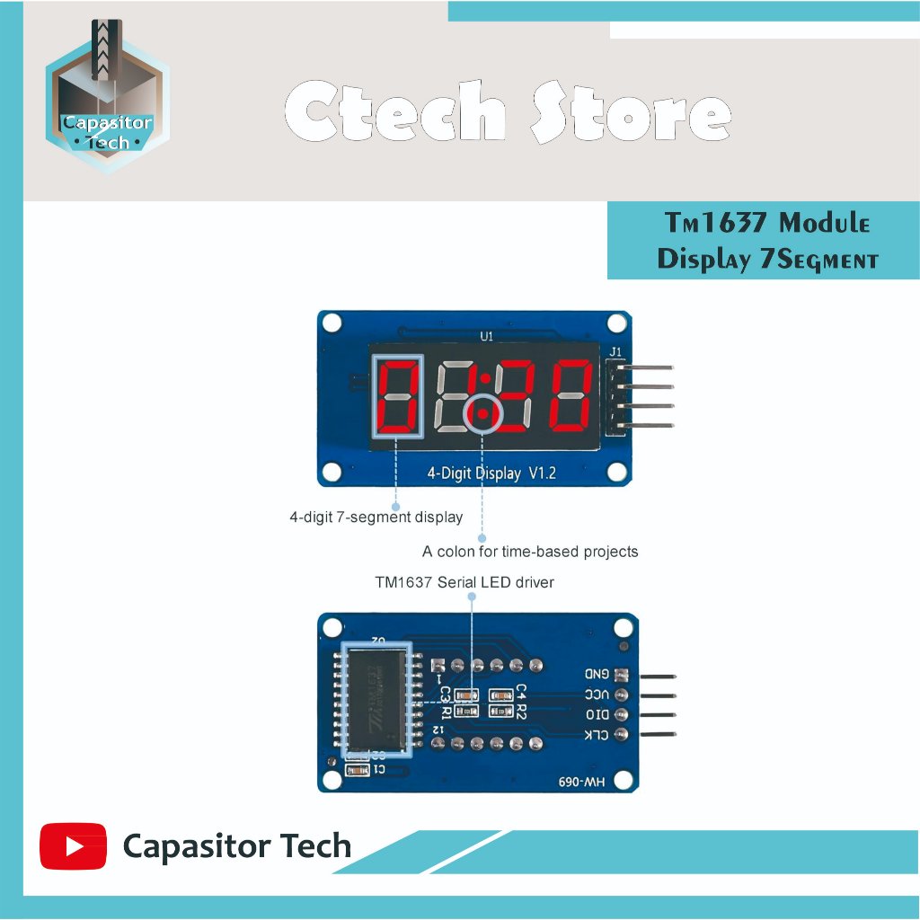 Modul TM1637 TM 1637 4-digit Seven Segment Clock warna MERAH Arduino