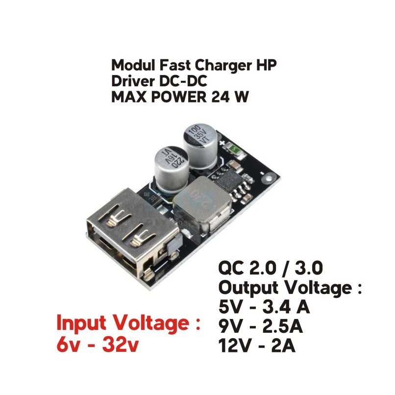 Modul USB Fast Charger 5V 3.4A QC3.0 24W Charging Power Supply Step DC