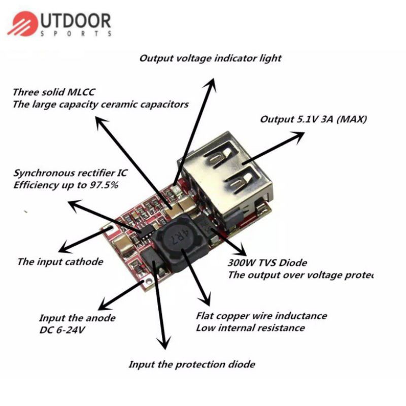 Modul USB Step Down Charger HP Motor Mobil Truk Aki 6-24V 24V 12V To 5V 3A