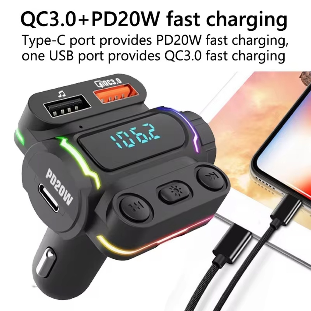 Modulator Bluetooth Mobil / Casan Mobil / FM Transmitter / USB Type C Car Charger LED 3.A