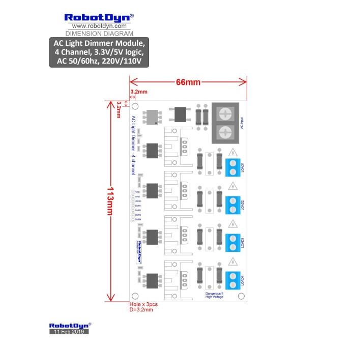 Module Light Dimmer Lampu 220V AC 16A 4 Channel PWM 5V 3.3V Arduino