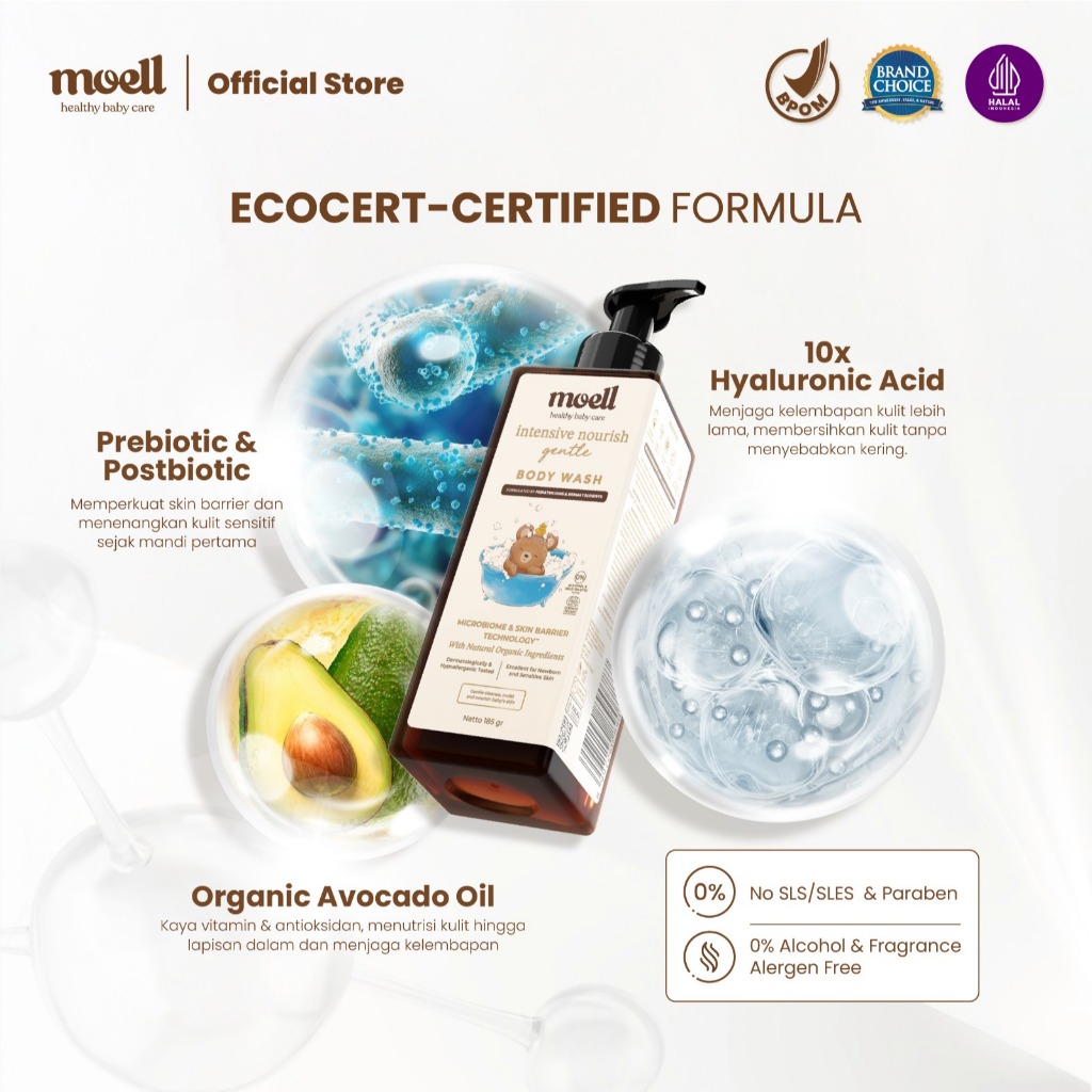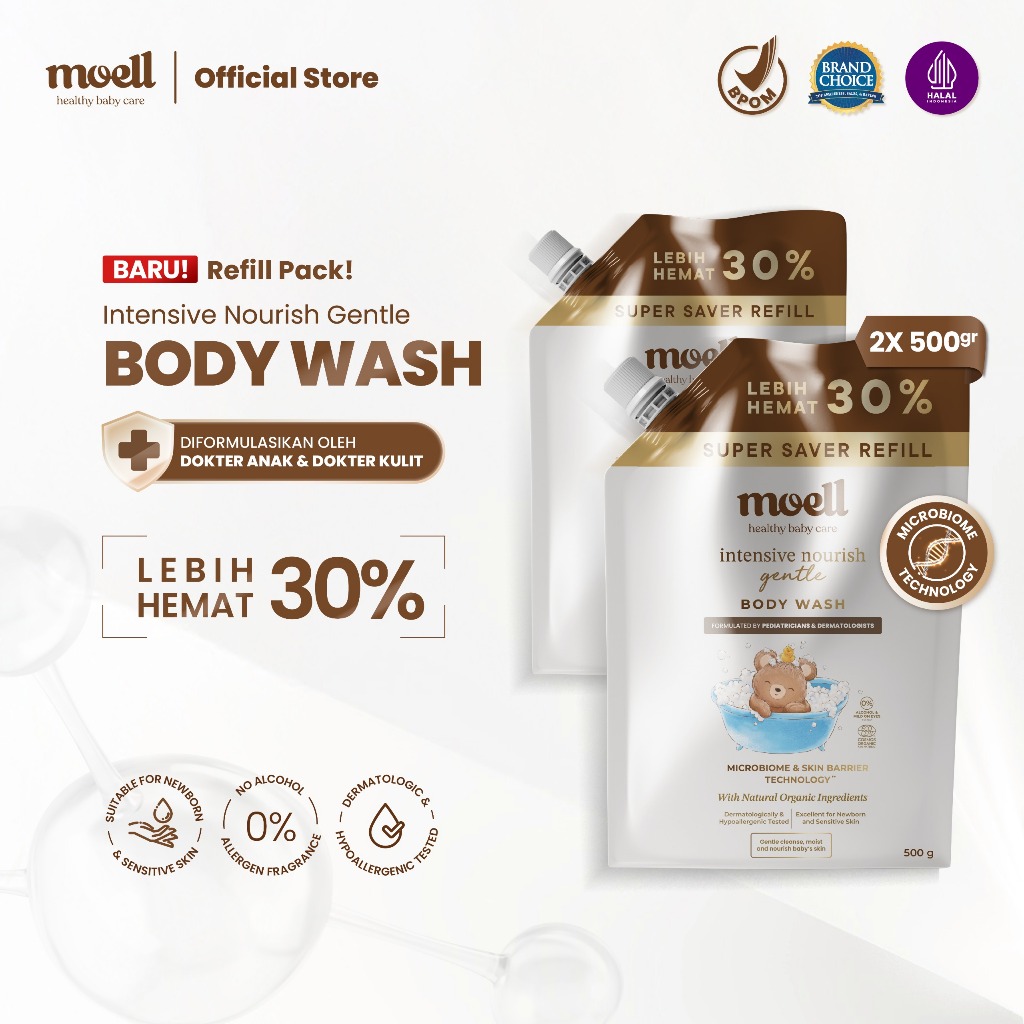 Moell Gentle Sabun Mandi Bayi Anak Kemasan Refill 500gr - Kulit Kering dan Sensitif - Tanpa SLS & Alkohol - Kulit Sensitif dan Kering - Skincare Bayi Formulasi Doker dengan Microbiome Teknologi - Skincare Bayi - Skincare Anak