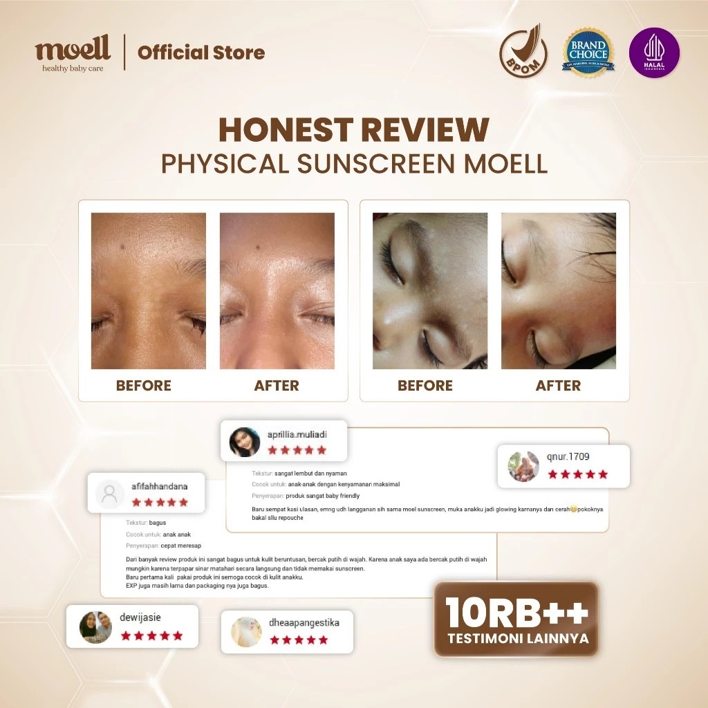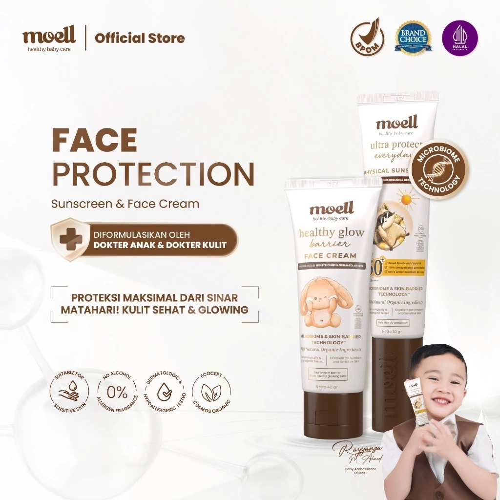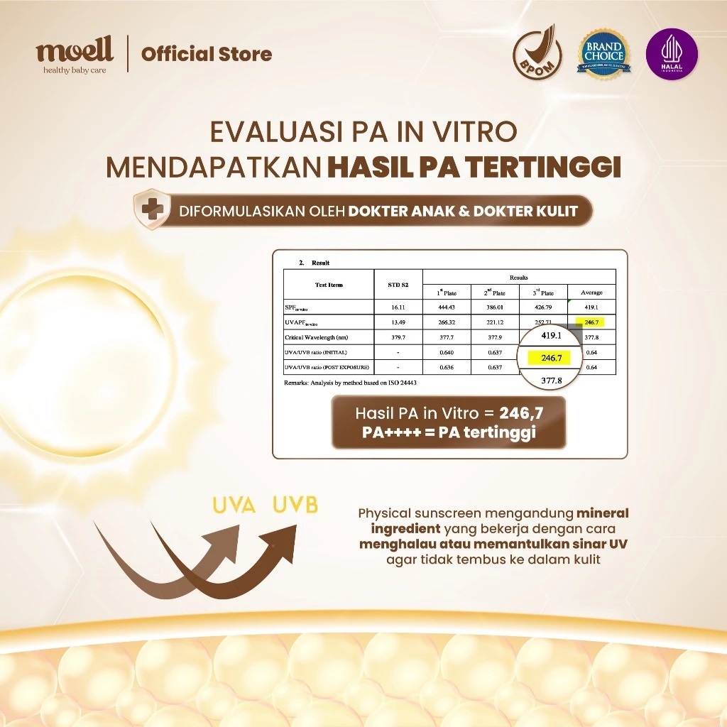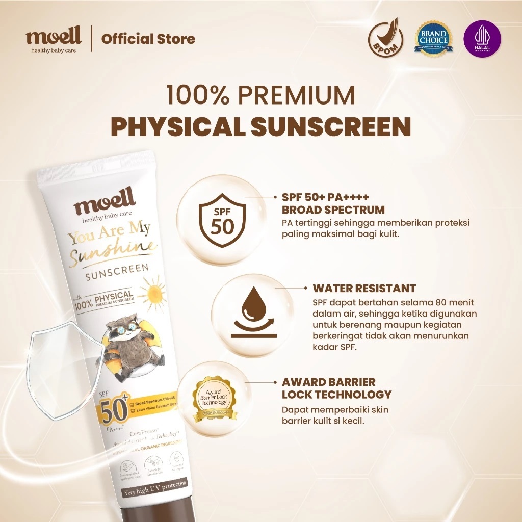 Moell Physical Sunscreen Anak dan Bayi SPF 50 PA ++++ Water Resistant Anti UV Shield Baby SunBlock