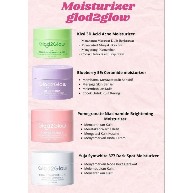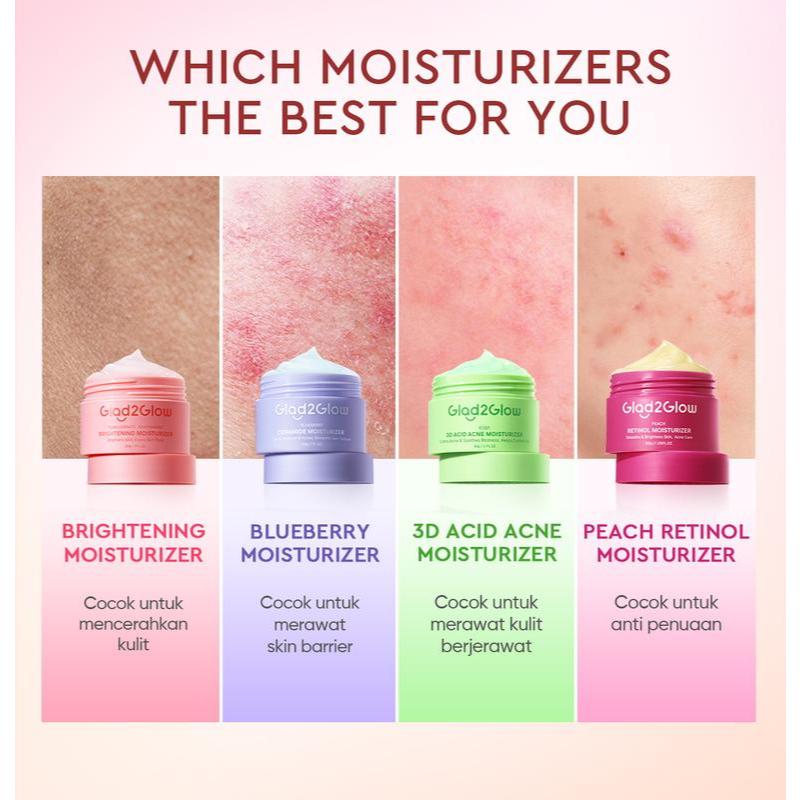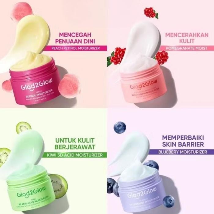 Glad2Glow Moisturizer Series Mencerahkan Pencerah Wajah Anti Jerawat Penuaan Hilangkan Flek Tenangkan Kulit Niacinamide