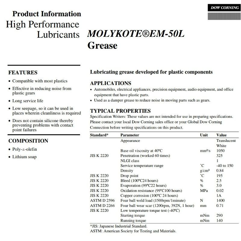 Molykote EM-50L Grease 30gr High Performance Pelumas Khusus Plastik