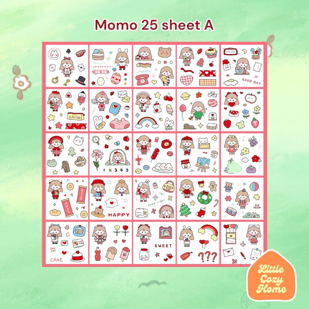 Momo Sticker Pack Paket Stiker Lucu Ala Jepang Korea Karakter Momo Anak Cewek Mainan Anak Perempuan Hiasan Dekorasi Sticker Imut Sovenir Kado Ultah Anak Viral